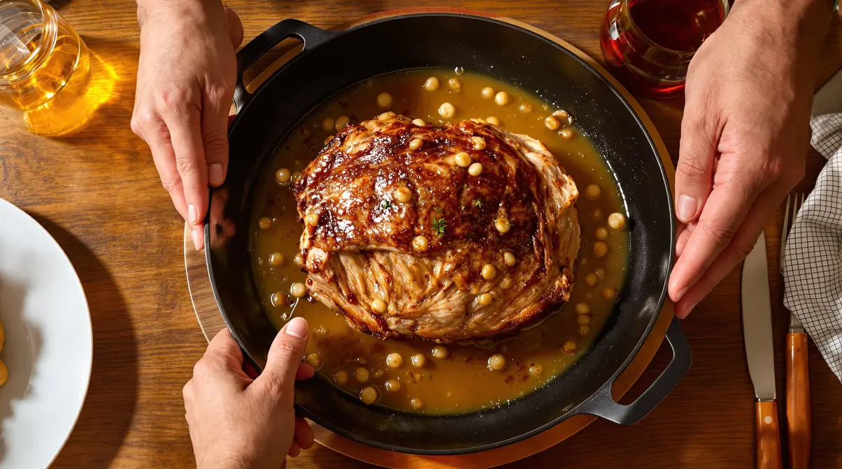 Si vous aimez la viande très confite, prolongez encore la cuisson de 10 à 15 minutes. Surveillez la couleur. Le rôti doit être doré mais pas brûlé, et la sauce bien nappante.